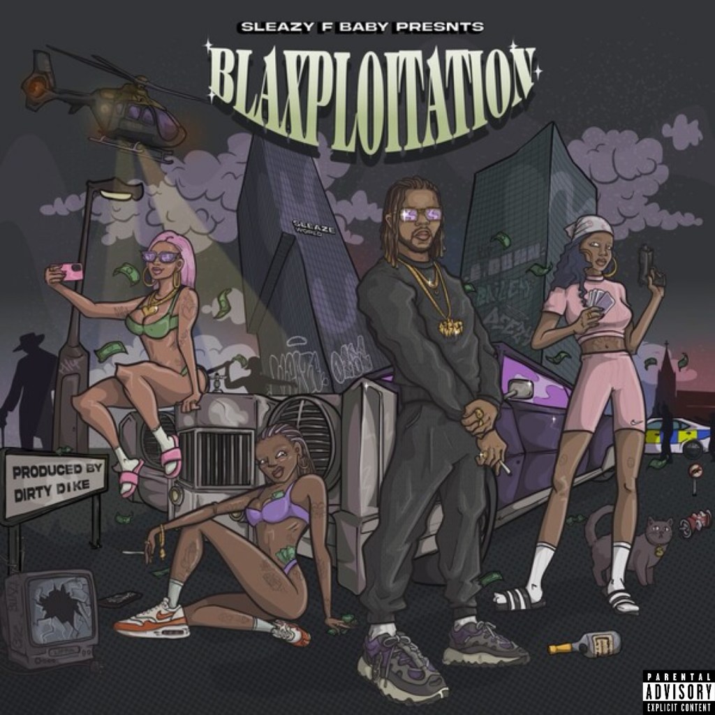 Sophomore effort from Manchester, England, United Kingdom emcee/producer Sleazy F Baby. A member of the Cult of the Damned collective, he would sign to Blah Records in 2016 & make his full-length debut that year with All Blahk Tracksuit. He would also form the Super Sag Bros with Black Josh in the summer of 2020 during the COVID-19 pandemic, enlisting Cambridge producer & Melonskin Records founder Dirty Dike from Contact Play to solely handle all the production for Sleazy’s equivalent to an audio Blaxploitation film.